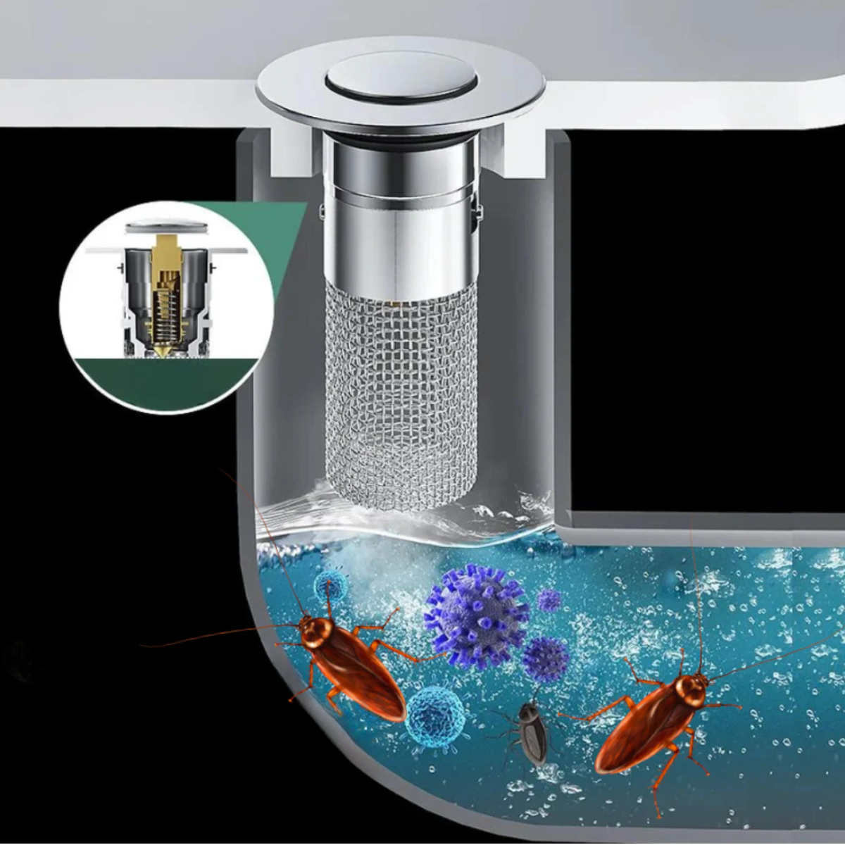 The all-in-one drain catcher features a filter that catches hair and debris, which prevents hair and waste from blocking the drain pipe.