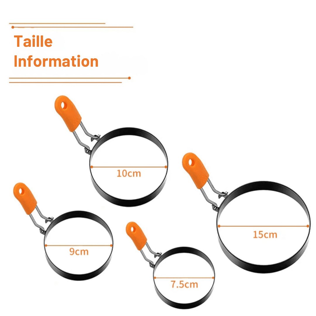 Suitable Size: The round non-stick egg molds are available in 3 sizes: 3 inches (7.5 cm), 3.5 inches (9 cm), and 4 inches (10 cm). Choose the size that best fits your cooking needs.
